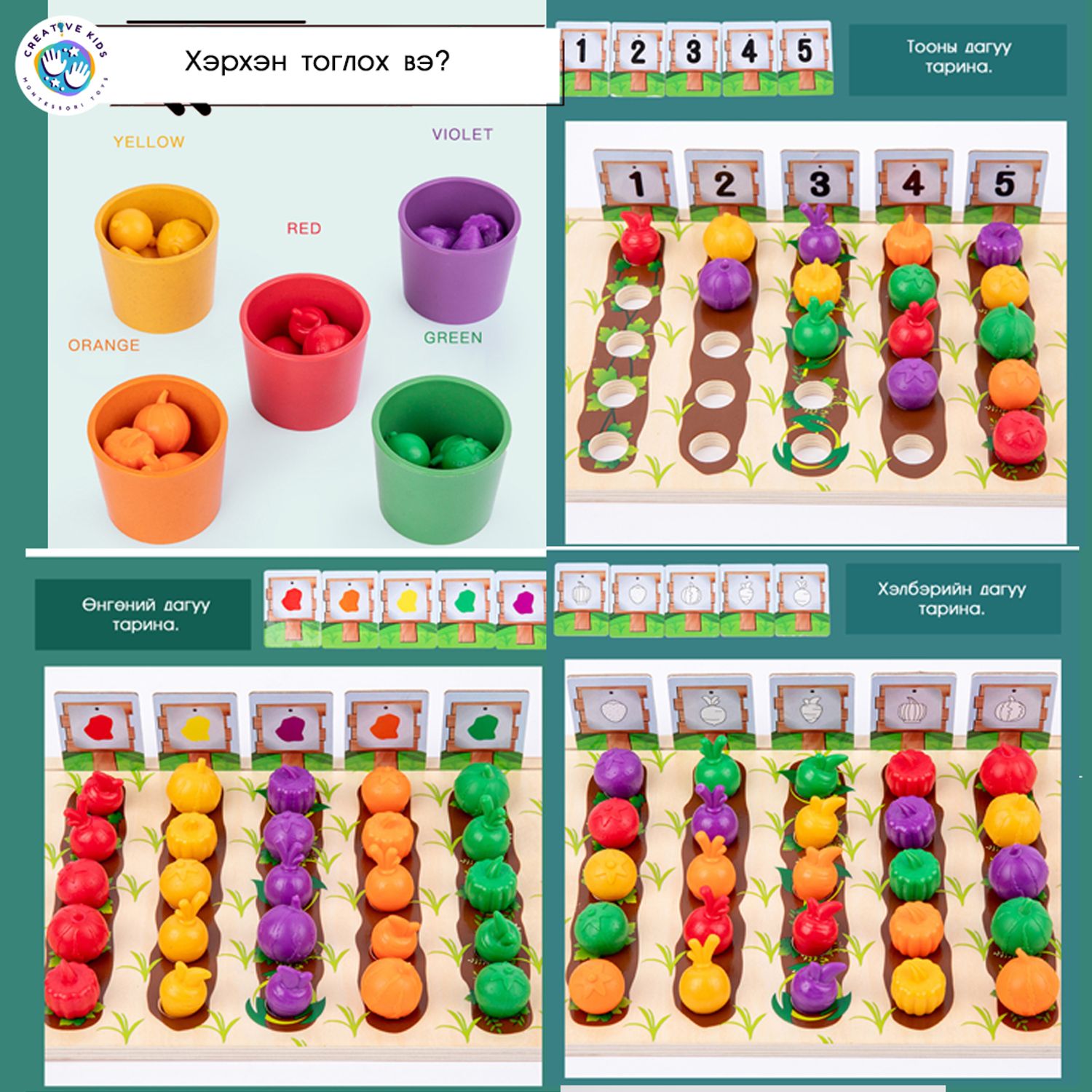 4. Карт дээрх өнгөний дагуу жимс, ногоо тарина.