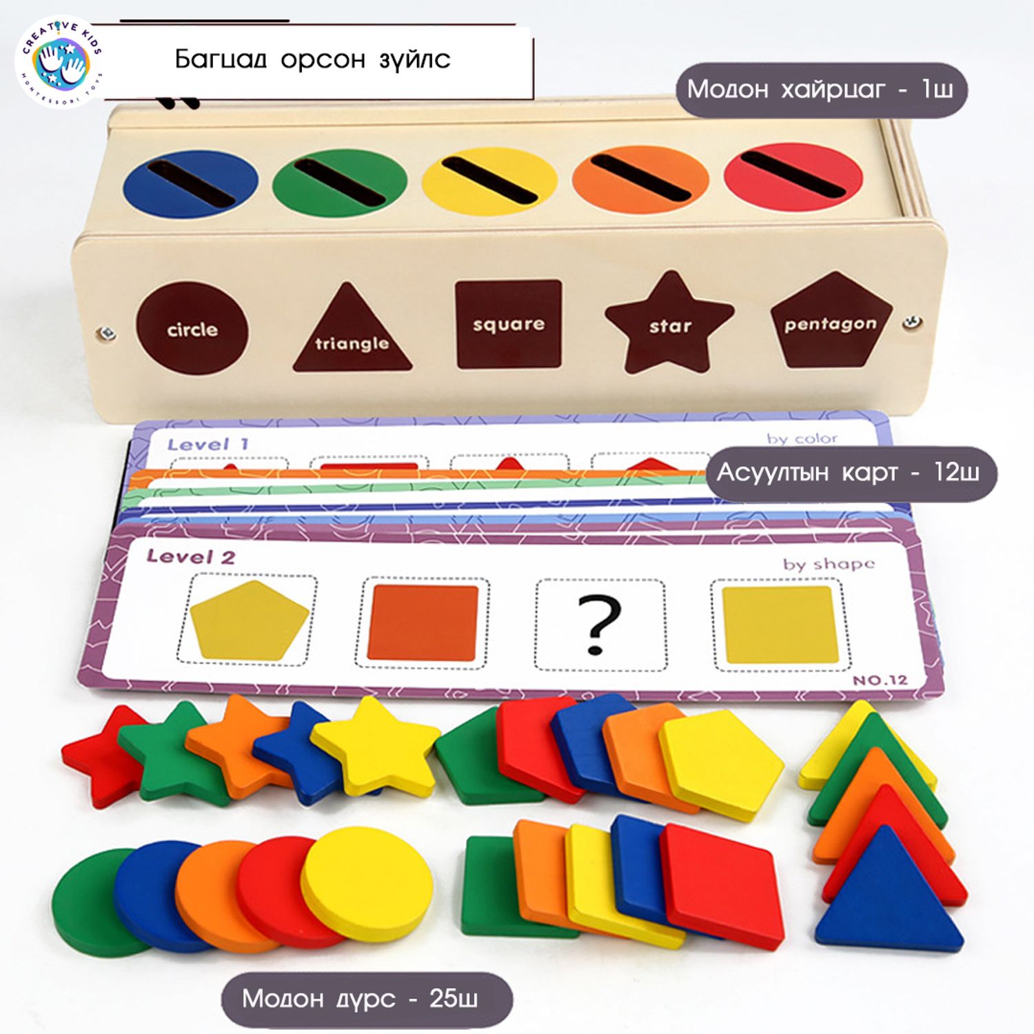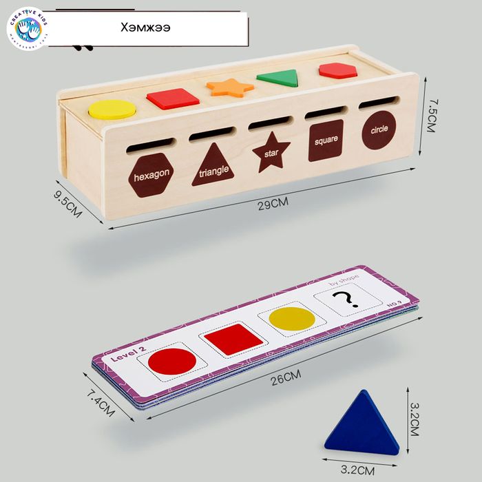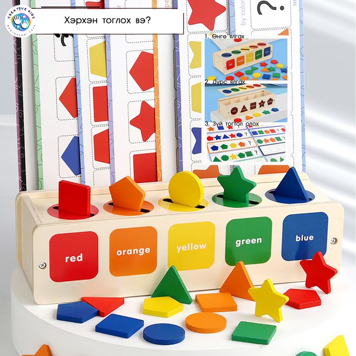 1. Дүрсүүдийг модон хайрцагт хуваарилсан өнгөний дагуу хийнэ.